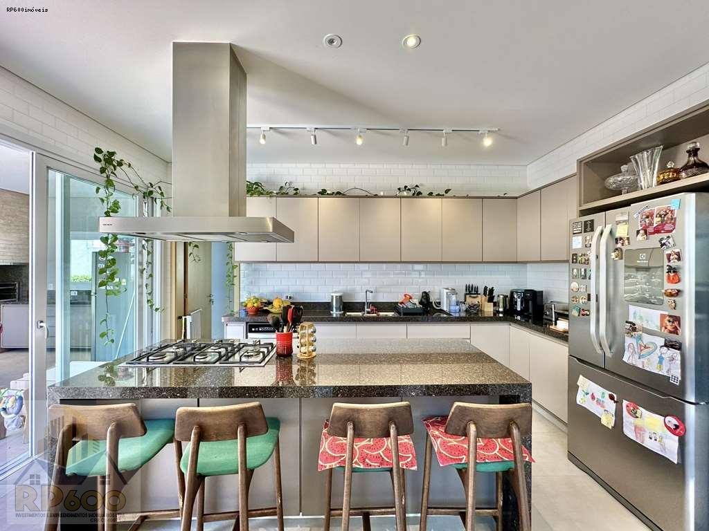 - Cozinha planejada repleta de armários e gabinetes, tampos em granito, cuba inox, torneira gourmet, ilha, coifa inox, fogão 5 bocas Brastemp coocktop e forno Brastemp Gourmann.