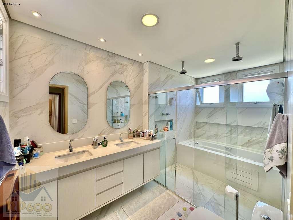 - Banheiros com tampos em resina, espelho, gabinetes box de vidro e nichos. Sendo a master com 2 cubas, 2 duchas e 2 nichos.