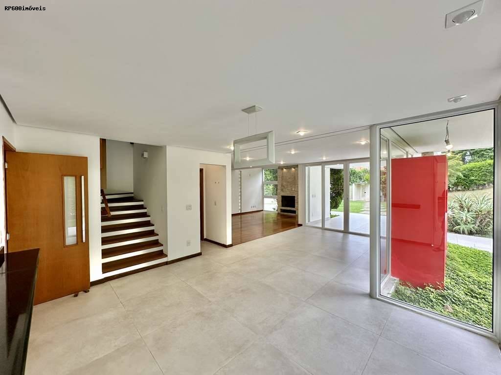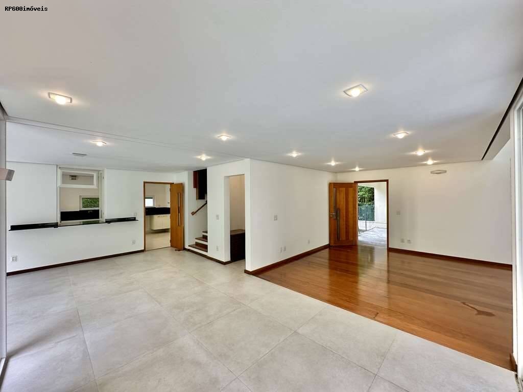 A casa conta ainda com seis vagas de garagem, piso em tábuas largas nas áreas sociais, porcelanato antiderrapante nos banheiros e taquinhos de madeira nos ambientes de descanso. Louças e metais de alta qualidade garantem durabilidade e estilo. A estrutura de aço assegura solidez, e o sistema solar de aquecimento contribui para eficiência energética. A segurança é reforçada por controle de acesso 24 h, proporcionando tranquilidade total.