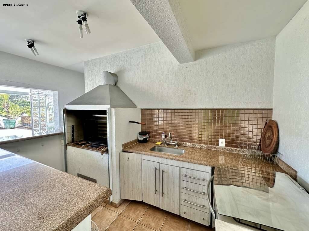 - Espaço gourmet com churrasqueira, bancada, pia, gabinetes e balcão em “L”.