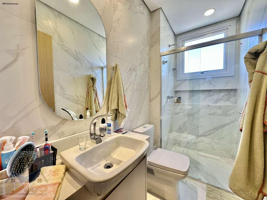 - Banheiros com tampos em resina, espelho, gabinetes box de vidro e nichos. Sendo a master com 2 cubas, 2 duchas e 2 nichos.