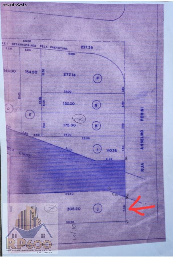 Área do Terreno com 305,00 m², Frente do terreno com 7,00 Metros, Lateral esquerda do terreno com 34,50 Metros.