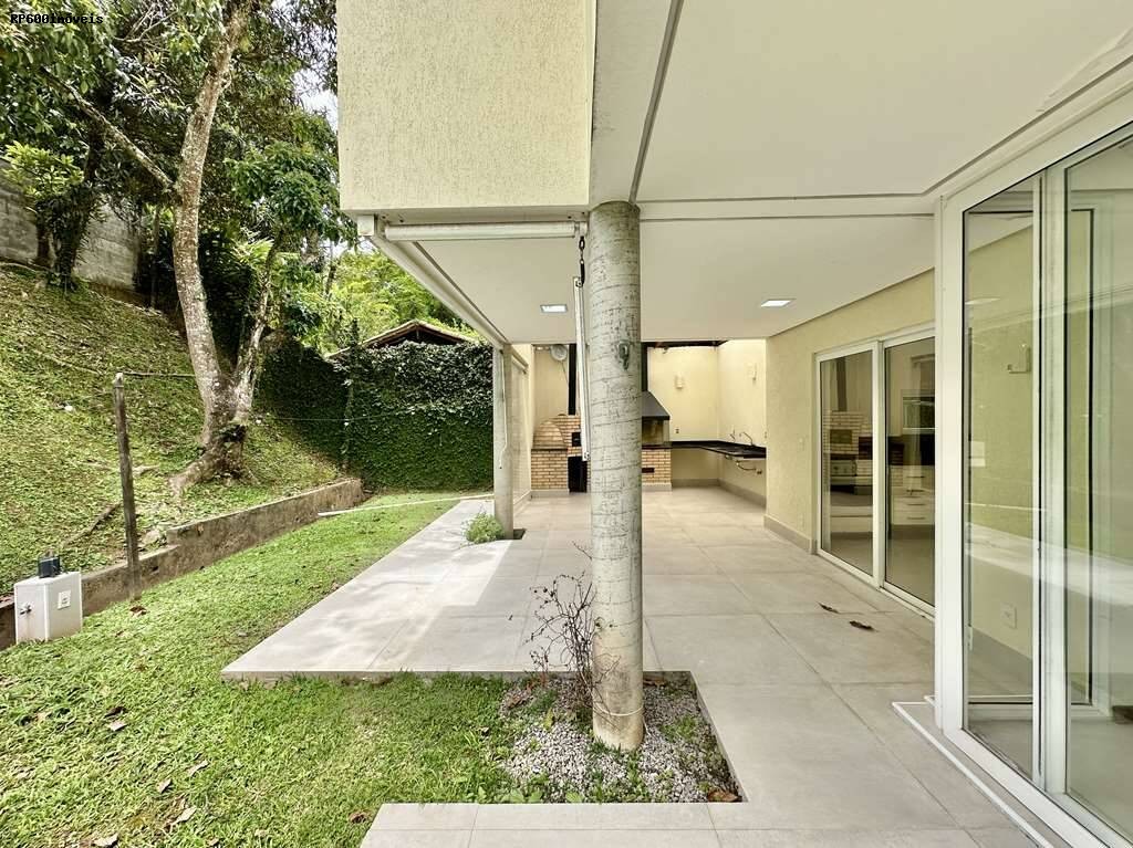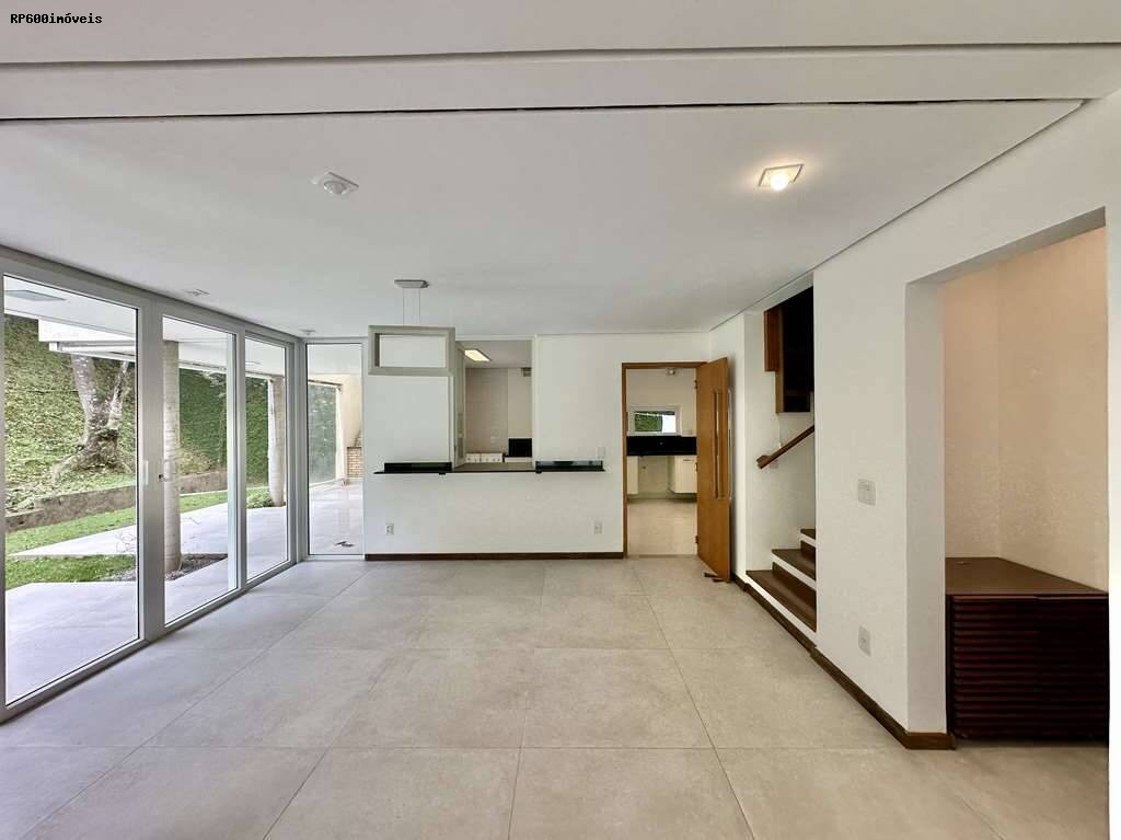 A casa conta ainda com seis vagas de garagem, piso em tábuas largas nas áreas sociais, porcelanato antiderrapante nos banheiros e taquinhos de madeira nos ambientes de descanso. Louças e metais de alta qualidade garantem durabilidade e estilo. A estrutura de aço assegura solidez, e o sistema solar de aquecimento contribui para eficiência energética. A segurança é reforçada por controle de acesso 24 h, proporcionando tranquilidade total.