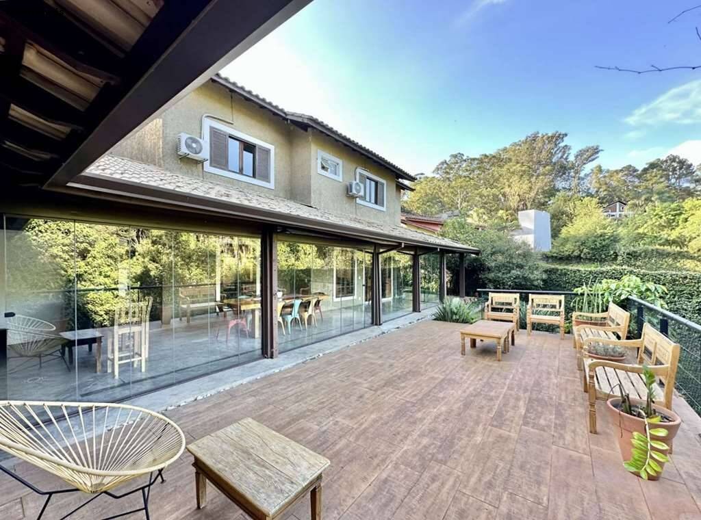 O coração da casa é o ambiente gourmet, integrado ao deck suspenso e à varanda envidraçada, onde a vista para a mata e as árvores frutíferas cria o cenário perfeito para encontros memoráveis. Para momentos de relaxamento, desfrute do spa com sauna, jacuzzi e lareira, enquanto o aquecimento a gás garante conforto nos dias mais frescos. O ar condicionado garante clima ideal em todas as estações.